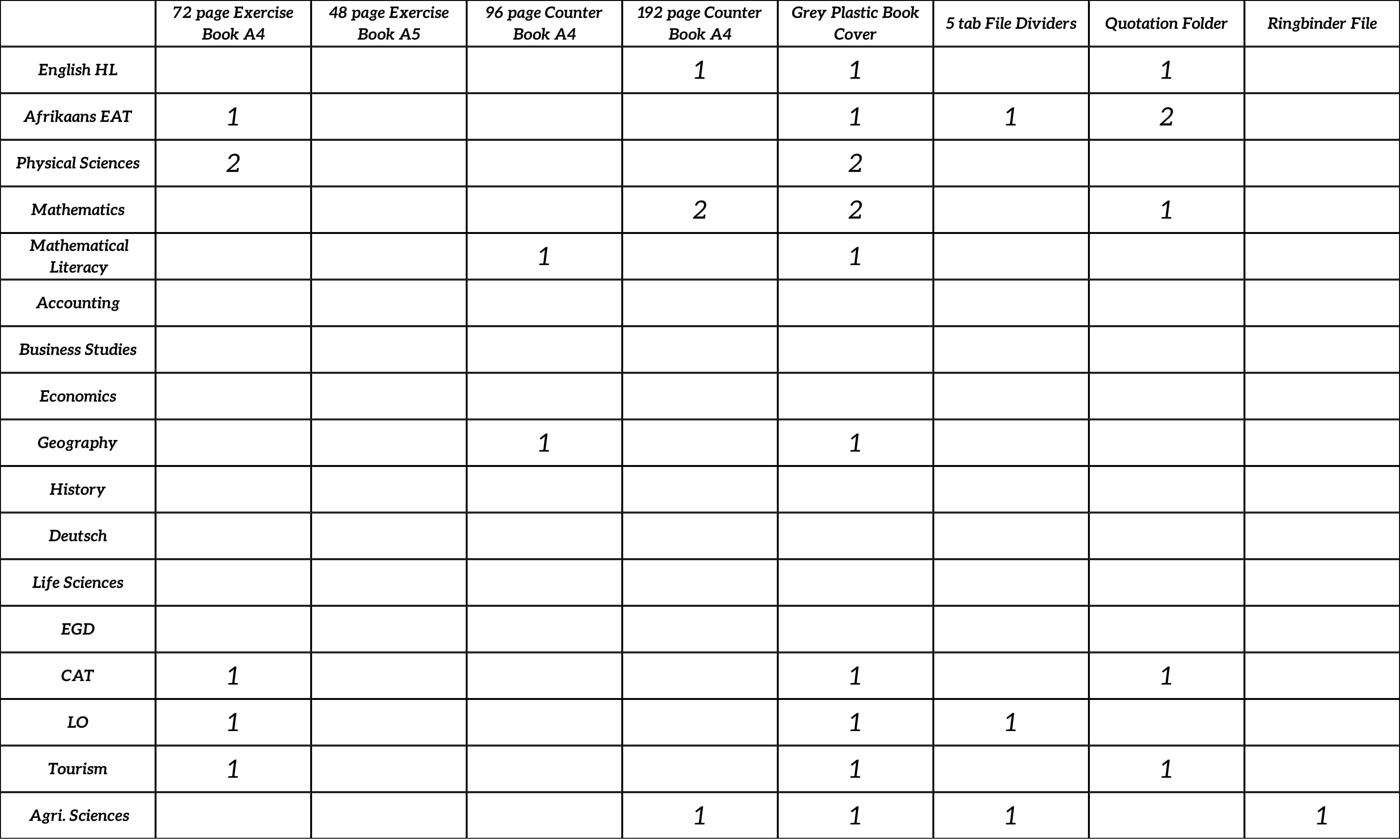 Here you will find all the prescribed textbooks for Grade 12E 2026.