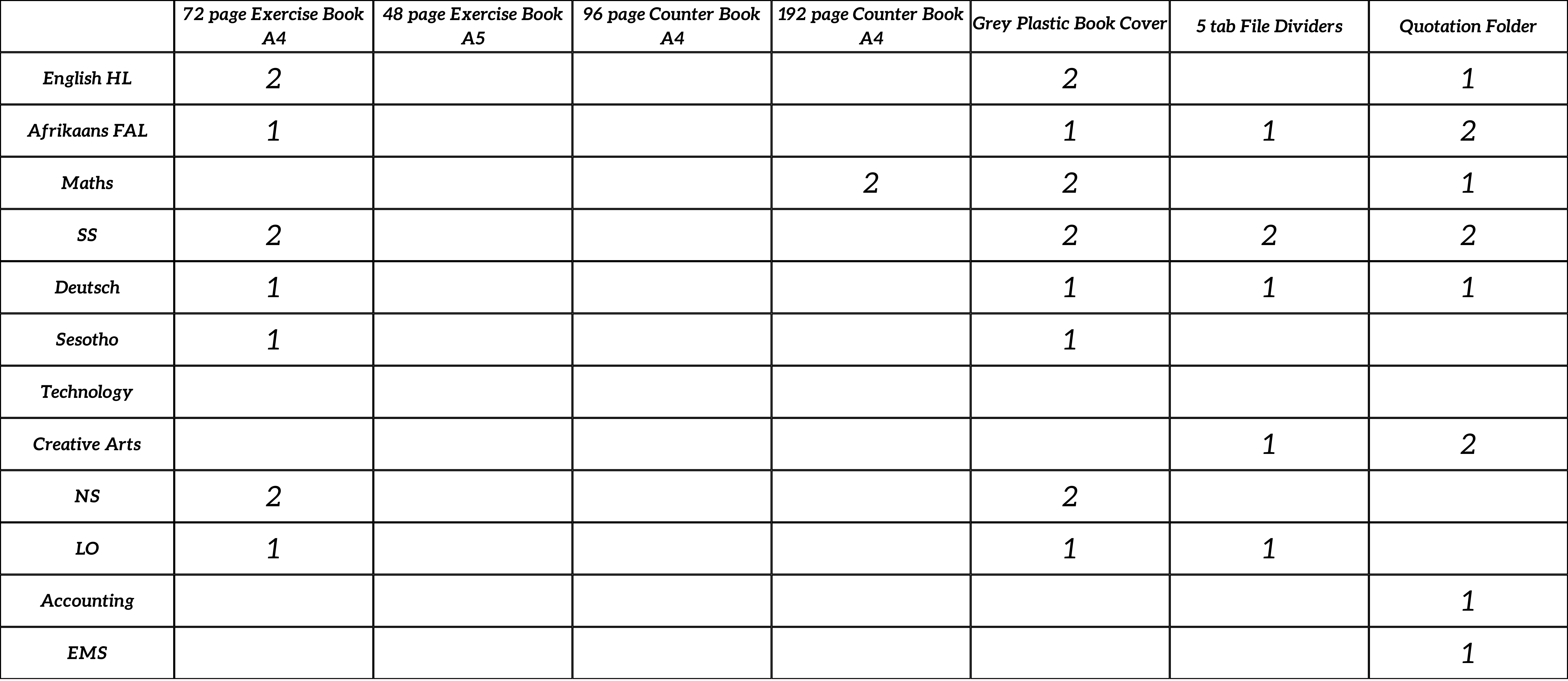 Here you will find all the prescribed textbooks for Grey College Grade 9E 2026.